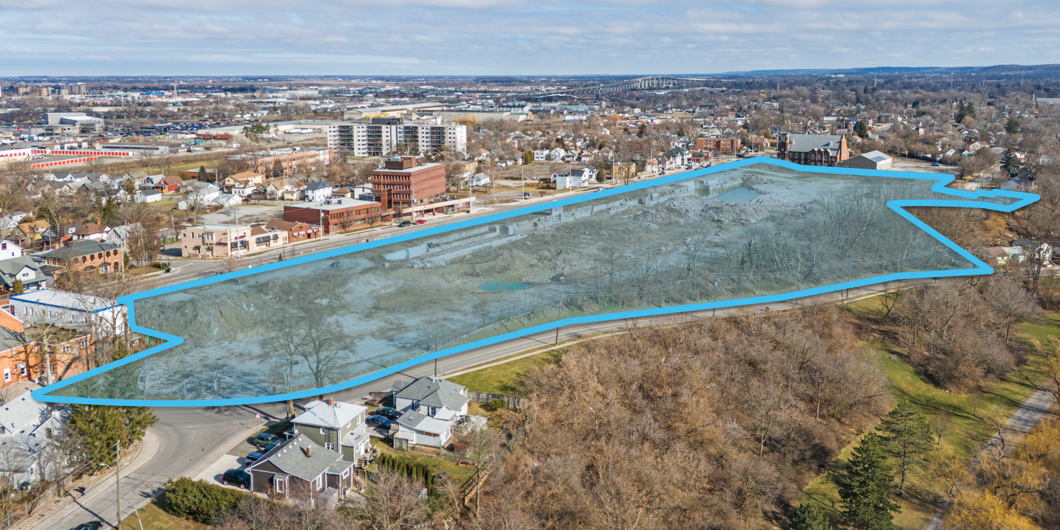 The history of the site dates to 1870 when it was developed into The St. Catharines General Hospital. The hospital was in continuous operation until 2013 when it was closed, after the new hospital on Fourth Avenue opened. In 2017 the site was sold, and demolition of the hospital began in 2019. The site is now vacant and ready for development.